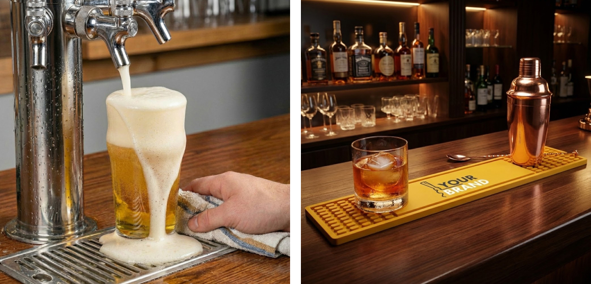 Small operational details often shape how guests feel about a venue. Custom bar mats contribute to a better experience by: